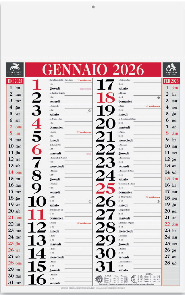 Calendario 30x47 cm