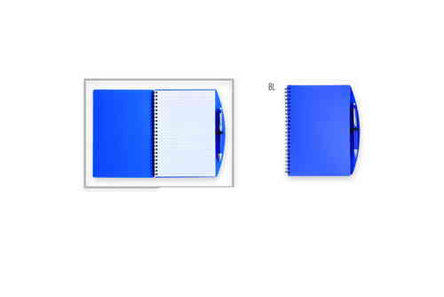 Taccuino Formato A5, copertina in PP, interno 65 pagine a righe, dotato di penna a sfera in plastica con clip in metallo, refill blu. Dimensioni: 21x17,8 cm