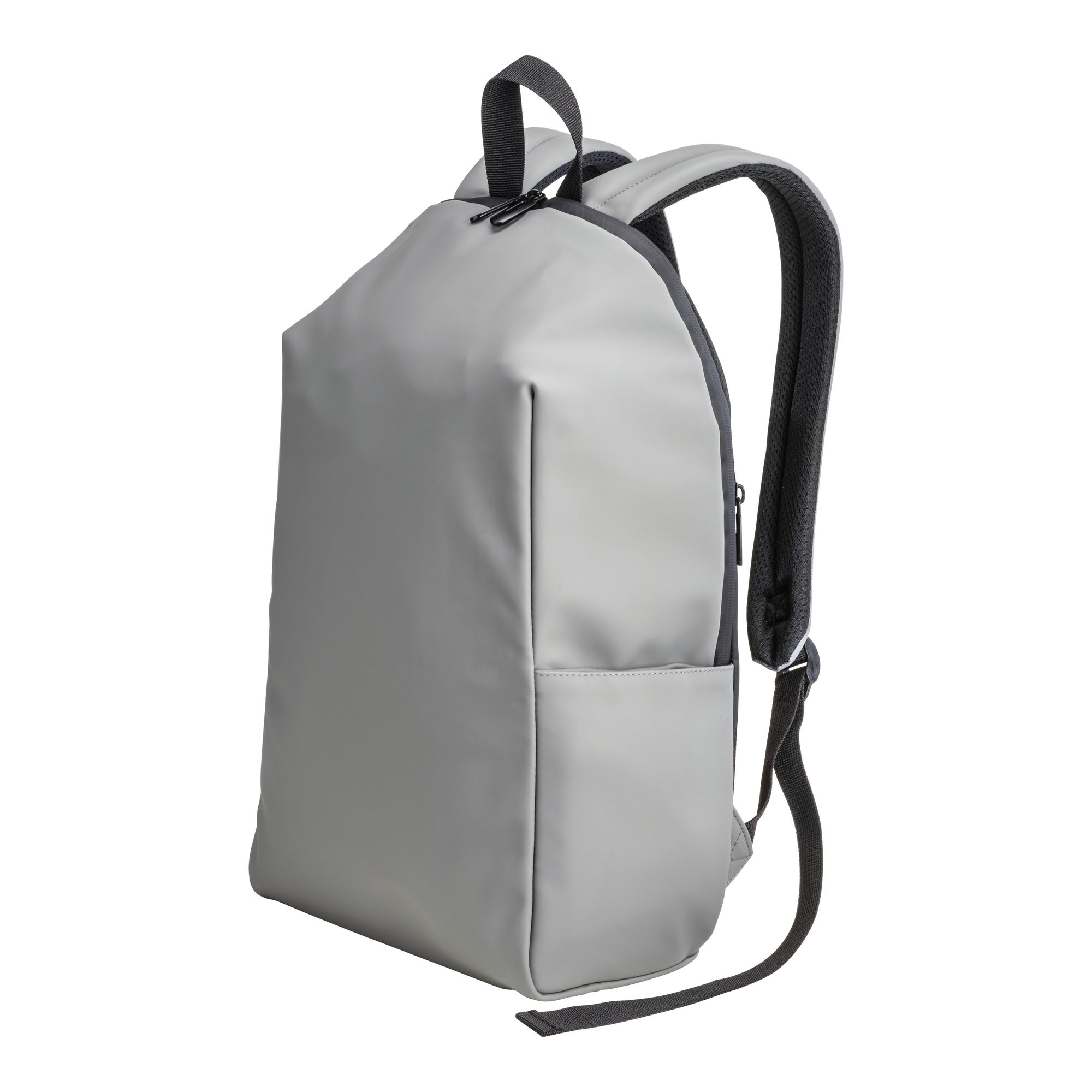 Zaino porta PC in Soft PU water resistant. Compartimento imbottito per notebook. Schienale e spallacci imbottiti con materiale traspirante. Tasche laterali portabottiglie. Tasca posteriore antitaccheggio.