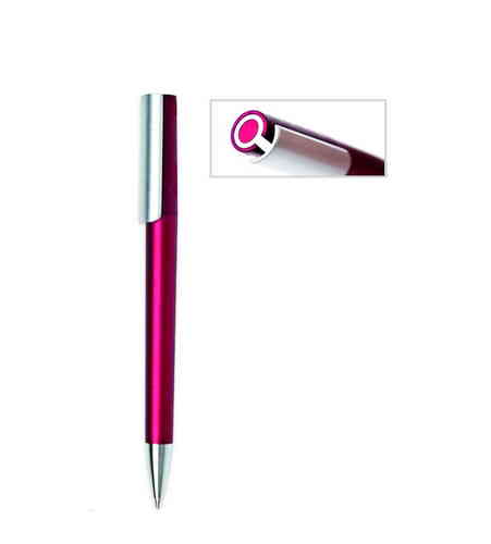 Penna sfera in plastica con meccanismo a rotazione. Refil nero. Misure stampa: serigrafia 35 x 15 mm - digitale 40 x 6 mm