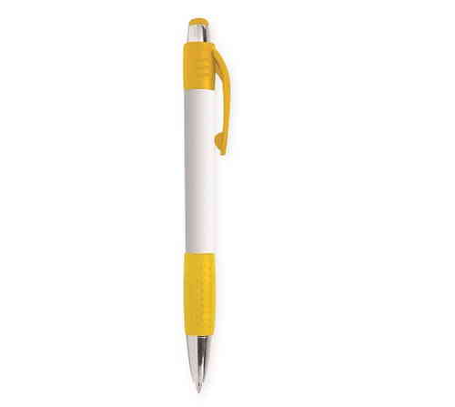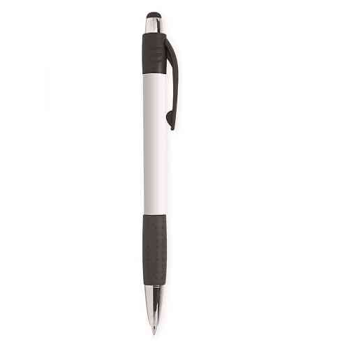 Penna a sfera in plastica con impugnatura in gomma. Refil nero.