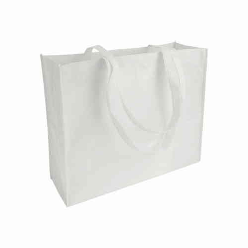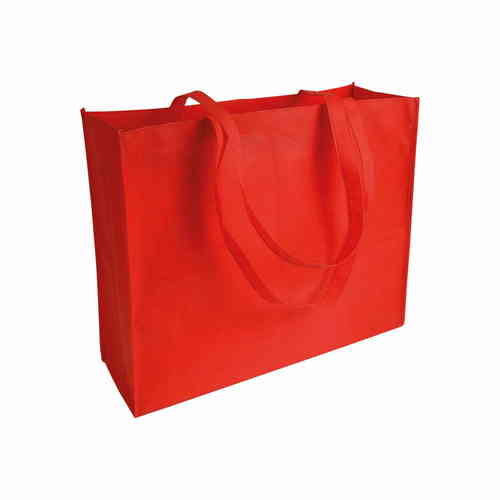 Shopper con soffietto in TNT cucito, con manici lunghi