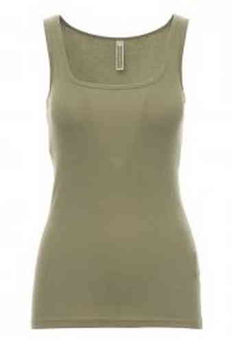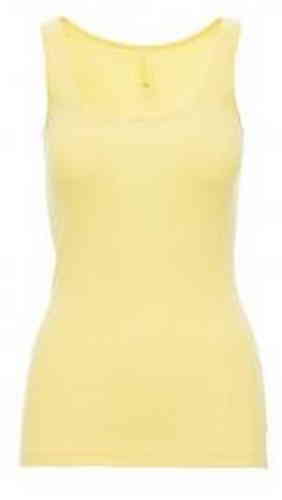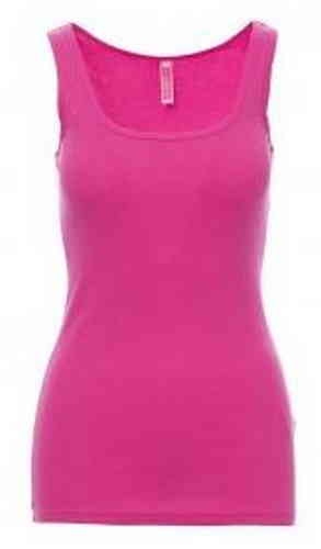 Canotta sfiancata da donna con girocollo ampio, colletto e bordo manica da 1 cm, spalline incrociate sul retro.