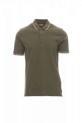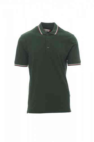 Polo unisex a manica corta a 3 bottoni in tinta, collo e bordo manica con fine profilo tricolore in contrasto, colletto e bordo manica a costine, spacchetti laterali con cucitura di rinforzo, cuciture del collo coperte, nastro di rinforzo laterale, cucitu
