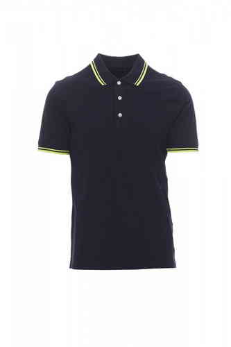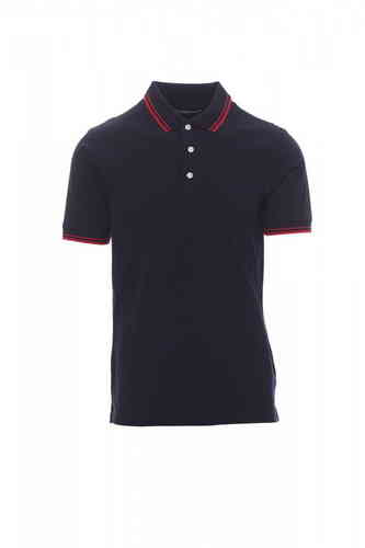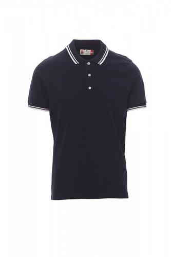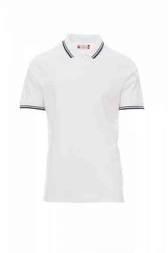 Polo da uomo manica corta a tre bottoni bianchi, collo e bordo manica con fine profilo a contrasto, colletto e bordo manica a costine, spacchetti laterali con cucitura di rinforzo, cuciture del collocoperte, nastro di rinforzo laterale, cuciture stretch,
