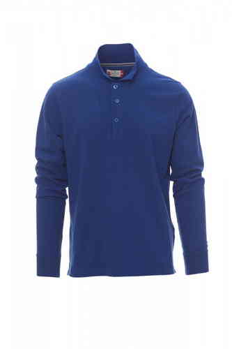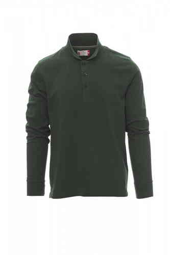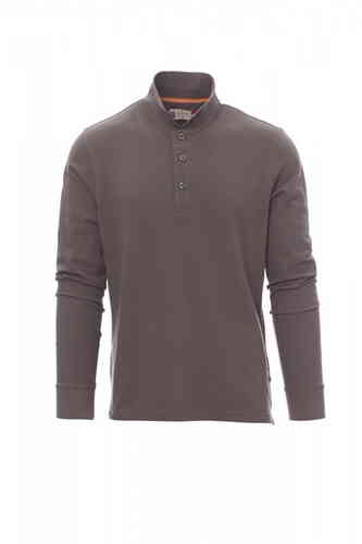 Polo da uomo a manica lunga con 3 bottoni in tinta effetto perlato, colletto e polsino a costine, spacchetti laterali, cuciture del collo coperte con nastro a contrasto, cuciture stretch, nastro di rinforzo laterale, rinforzo sagomato retrocollo