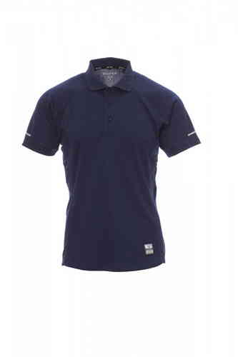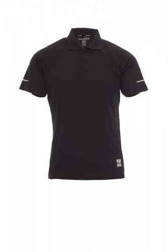 Polo da uomo tecnica-sportiva manica corta a tre bottoni in tinta, manica raglan, doppia cucitura laterale per una migliore vestibilità, fondo sagomato e più lungo sul retro, inserto riflettente allamaniche e retro collo, nastratura del collo a contrasto,