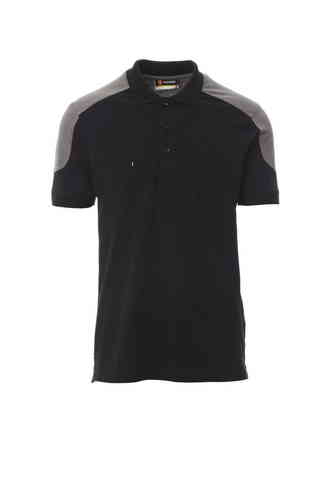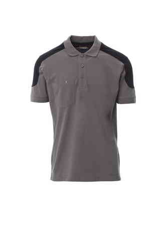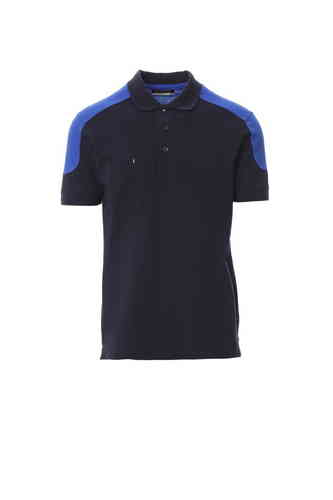 Polo bicolore a manica corta con 3 bottoni in tinta, taschino al petto con portapenna, bordo maniche a costine, spacchetti laterali, cuciture del collo coperte.