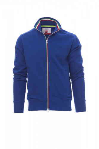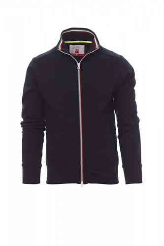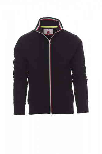 Felpa da uomo, zip intera SBS in plastica con tricolore a contrasto con doppio cursore in metallo, colletto in rib con tricolore a contrasto, manica a giro, due tasche esterne, polsini e vita in costina elasticizzata, cuciture rinforzate.