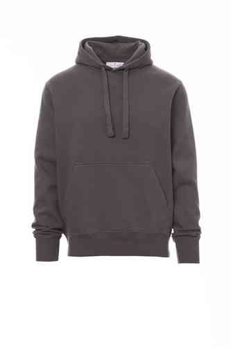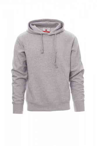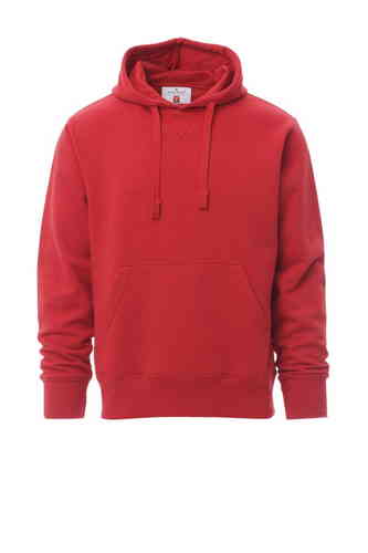 Felpa da uomo, cappuccio con coulisse in tinta, cucitura estetica a V al collo, tasche a marsupio, manica a giro, polsini e vita in costina elasticizzata, cuciture rinforzate. Nastro di rinforzo interno collo in tinta.