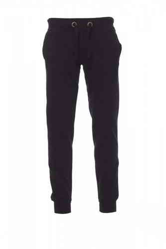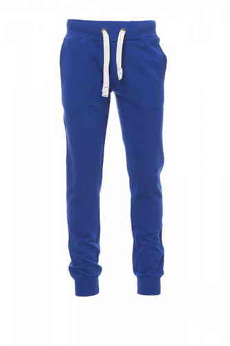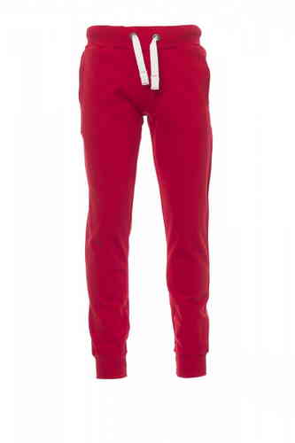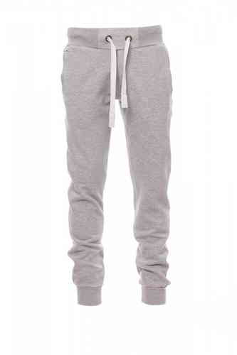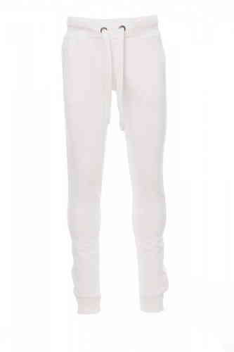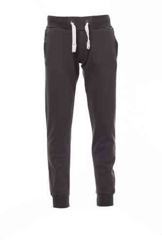 Pantalone da uomo in felpa, rib elasticizzato in vita e a fondo gamba, zip con patta, coulisse bianca in corda con cuciture in contrasto e anelle in metallo, due tasche frontali con rib e un taschinodietro, patta con zip e cuciture rinforzate.