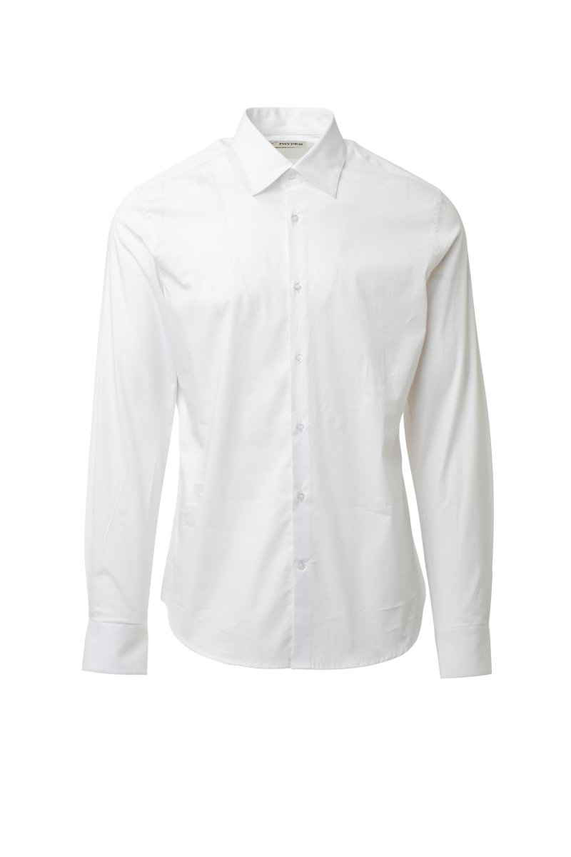 Camicia da uomo, vestibilità slim. Collo italiano sagomato con nasello chiuso e stecche estraibili. Cannoncino ripiegato all’interno e abbottonatura a vista. Bottoni effetto madreperla. Carré liscio sul retro. Pinces di ripresa a metà schiena. Mosca di te