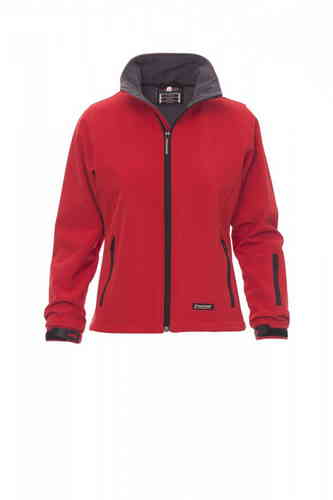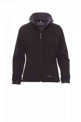 Giacca ergonomica da donna, zip lunga SBS nastrata, polsini regolabili con stringi polso gommati e velcro, due tasche laterali con zip, una tasca skipass al braccio, coulisse in vita. Una tasca interna e due zip per agevolare stampa e ricami al petto e al