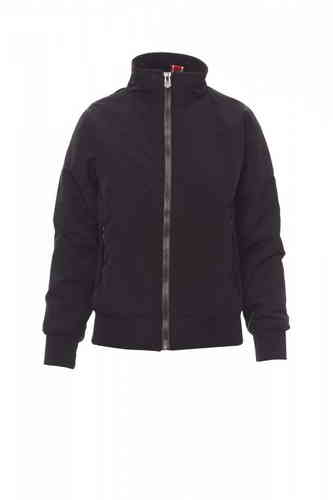 Giubbino da donna con rib elasticizzato in vita e ai polsi, due tasche esterne con zip coperta; interno imbottito e micropile nel colletto e nella schiena, 1 tasca interna porta smartphone con cerniera e passaggio per cuffie, zip al petto e sul fondo per