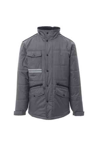 Giubbino a 3/4 da uomo, zip 8mm in plastica con cursore in metallo con patta e bottoni in plastica, retro sagomato e con cappuccio richiudibile nel colletto, due tasche esterne LOCK SYSTEM e due con zip, inclinazione delle tasche per agevolare l'ingresso