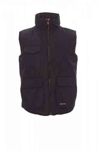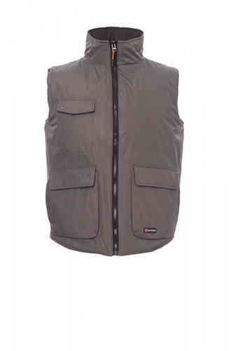 Gilet unisex, zip da 8mm in plastica con cursore in metallo, due ampie tasche frontali LOCK-SYSTEM, due tasche laterali, porta cellulare al petto. Interno: imbottito, zip per agevolare stampe e ricami.