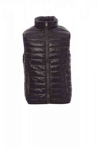 Gilet/piumino da uomo, zip 8mm in plastica con cursore in metallo, fine bordino in vita, due tasche esterne. Interno: imbottito di poliestere effetto piuma, tre tasche.