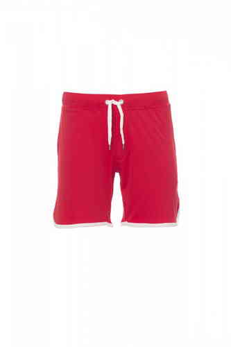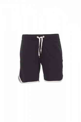 Bermuda unisex sportivo, coulisse in vita, patta con zip, due tasche laterali e profilo dei bordi a contrasto.