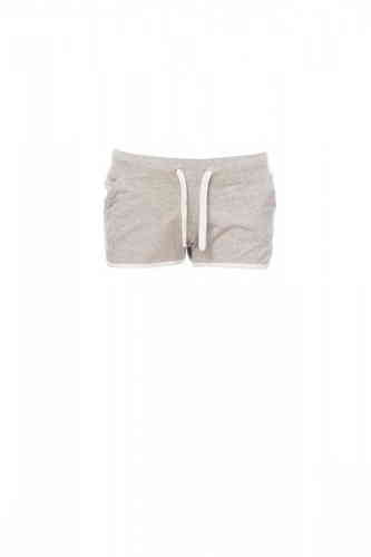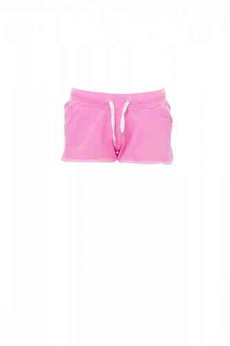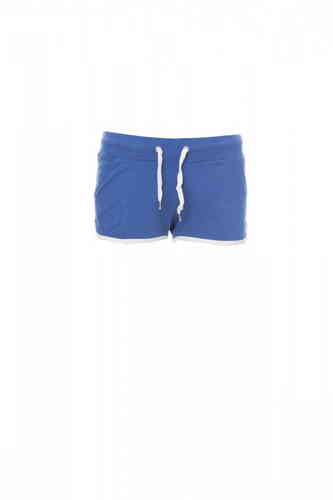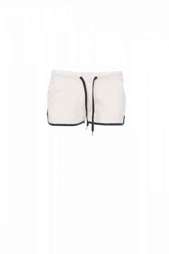 Calzoncini da donna in felpa con elastico e coulisse in vita, due tasche frontali e bordino di finitura a contrasto.