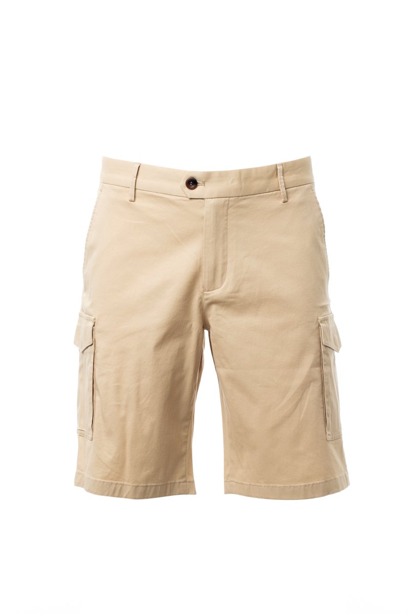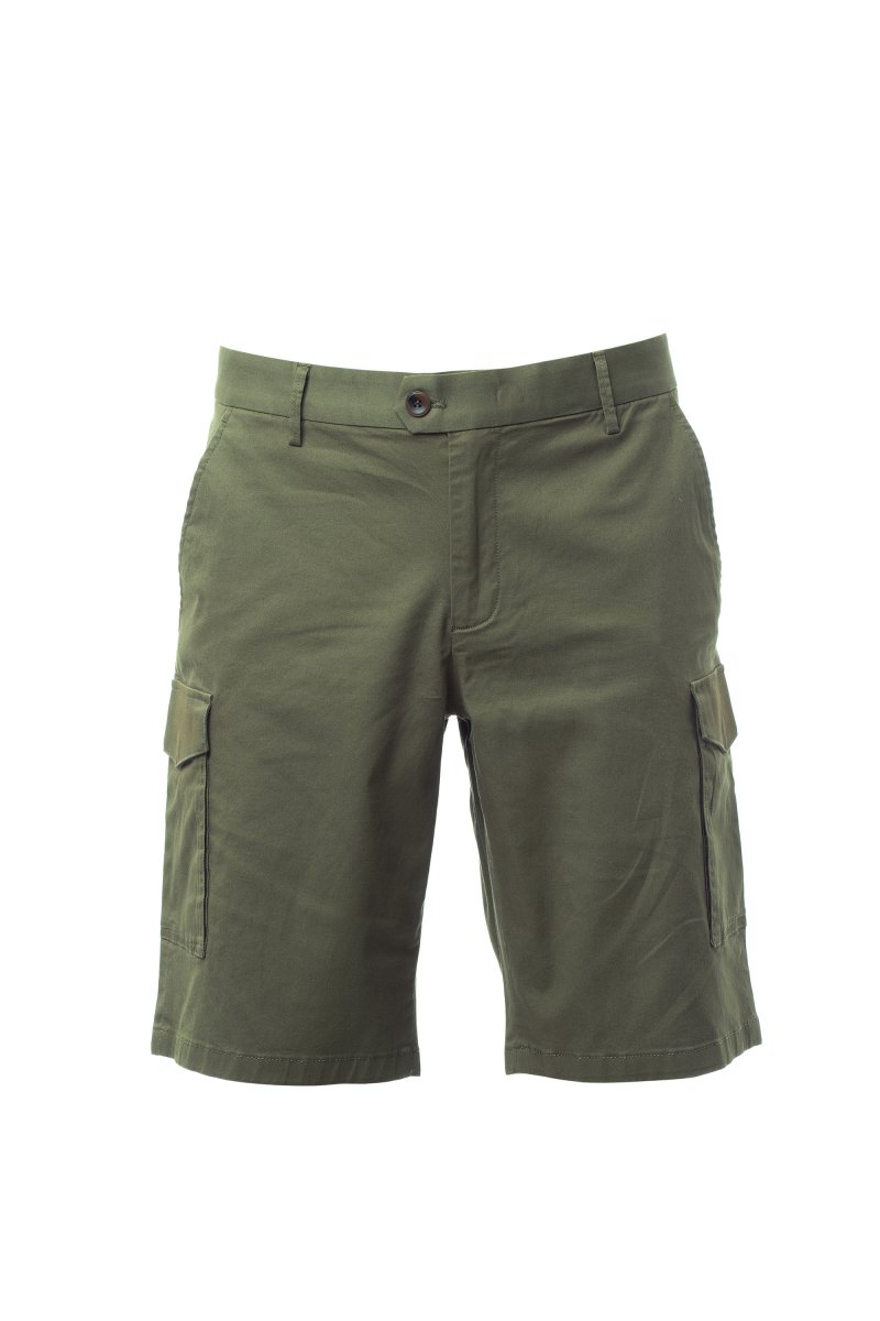 Bermuda da uomo, chiusura con zip e abbottonatura spostata con 2 bottoni, 2 tasche alla francese, 2 tasche laterali applicate con patta e bottone automatico, passanti sartoriali in vita, 2 tasche posteriori con patta e bottone automatico.