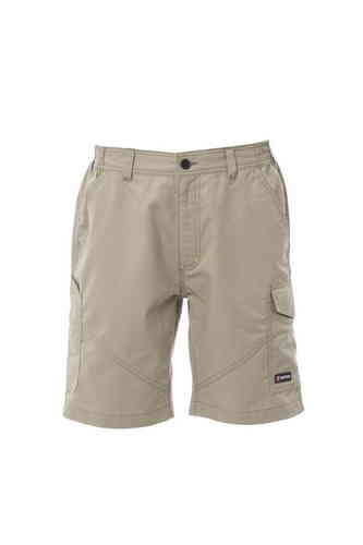 Bermuda uomo, elastici laterali e passanti in vita, chiusura con zip e bottone in plastica, due tasche anteriori a taglio classico, una tasca laterale LOCK SYSTEM, un porta metro, due tasche posteriori una aperta e una con patta e velcro, inserti ed impun