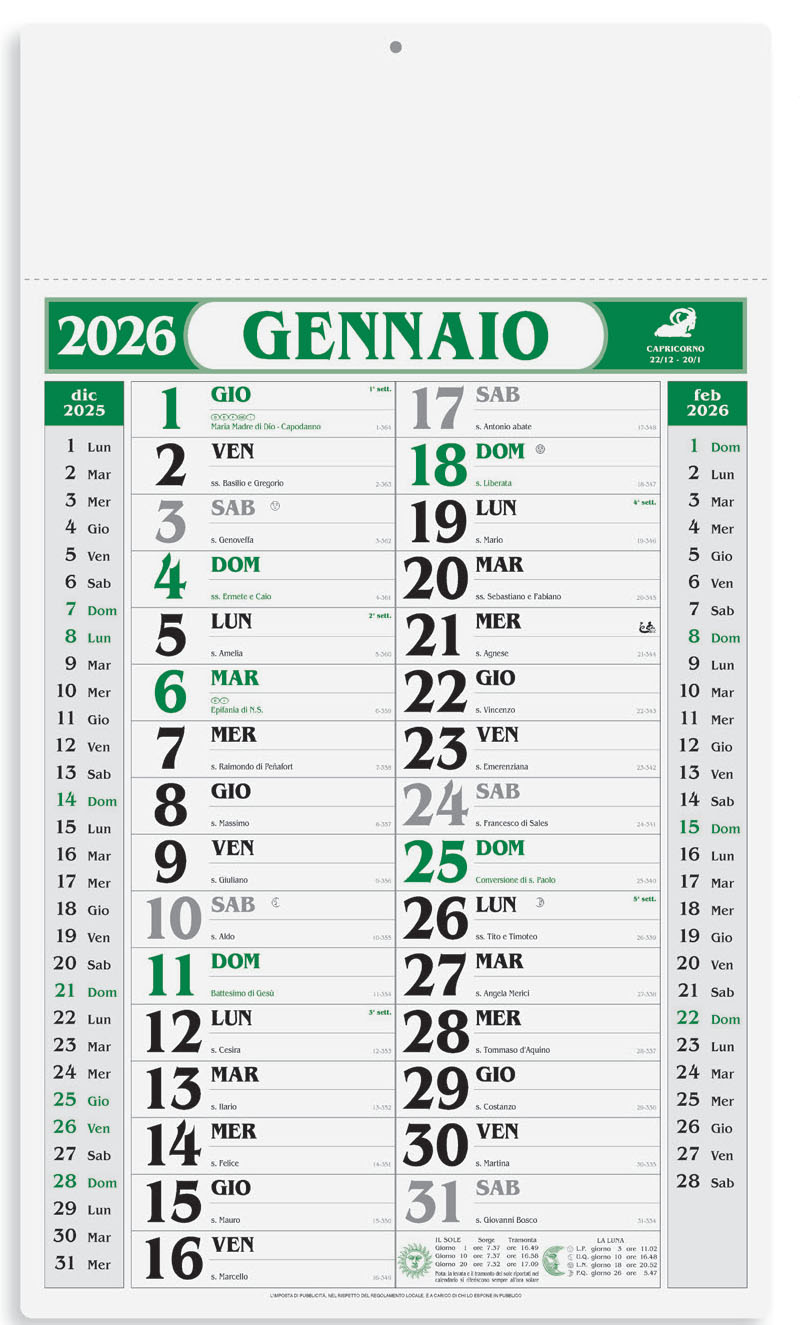 Misure: calendario: cm 31.5x53